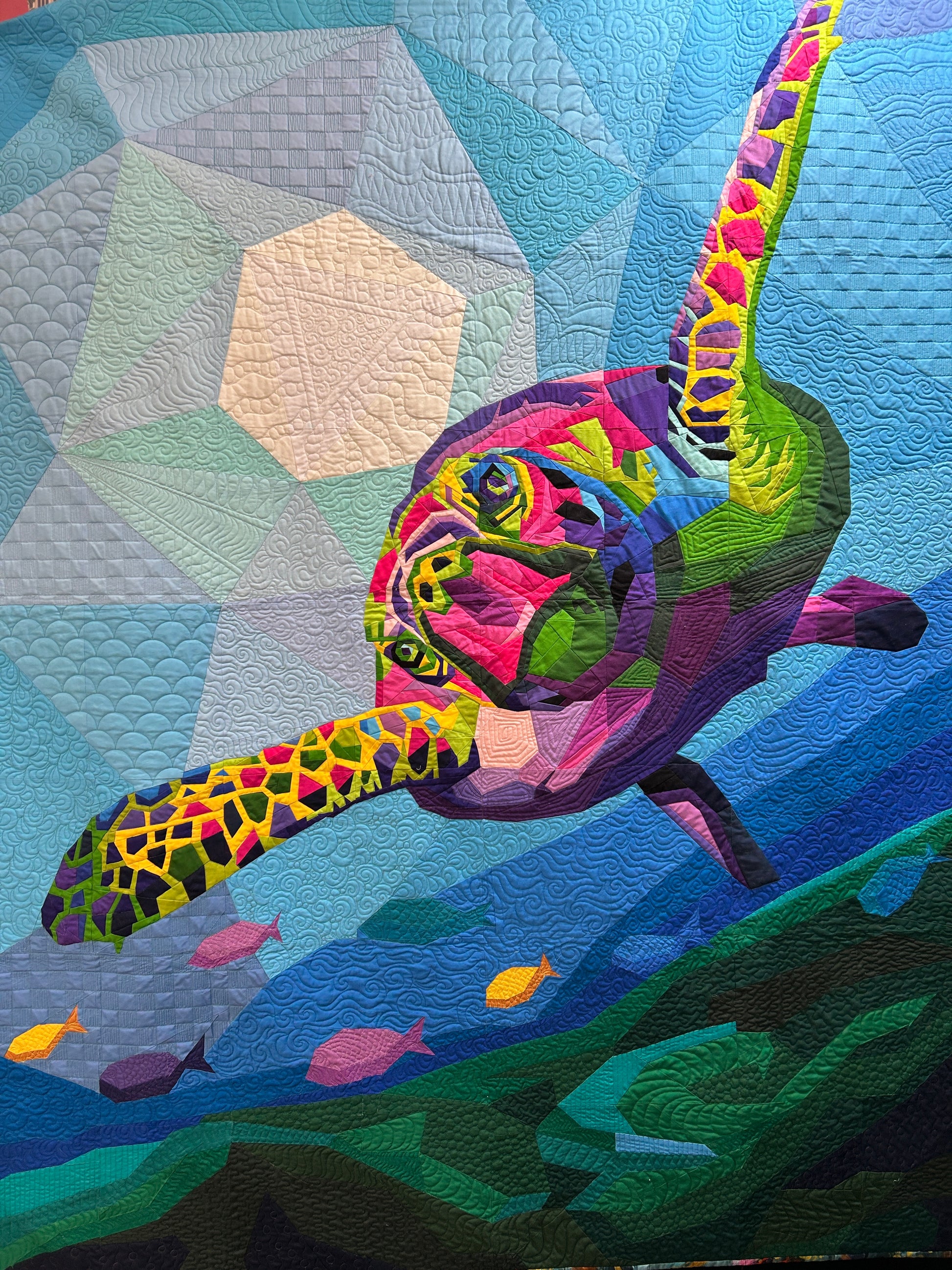 For lovers of the reef, this stunning show piece is so colourful and features a sea turtle as the star, with lots of reef fish and swirling plant life This top finishes at 60x80 inches.